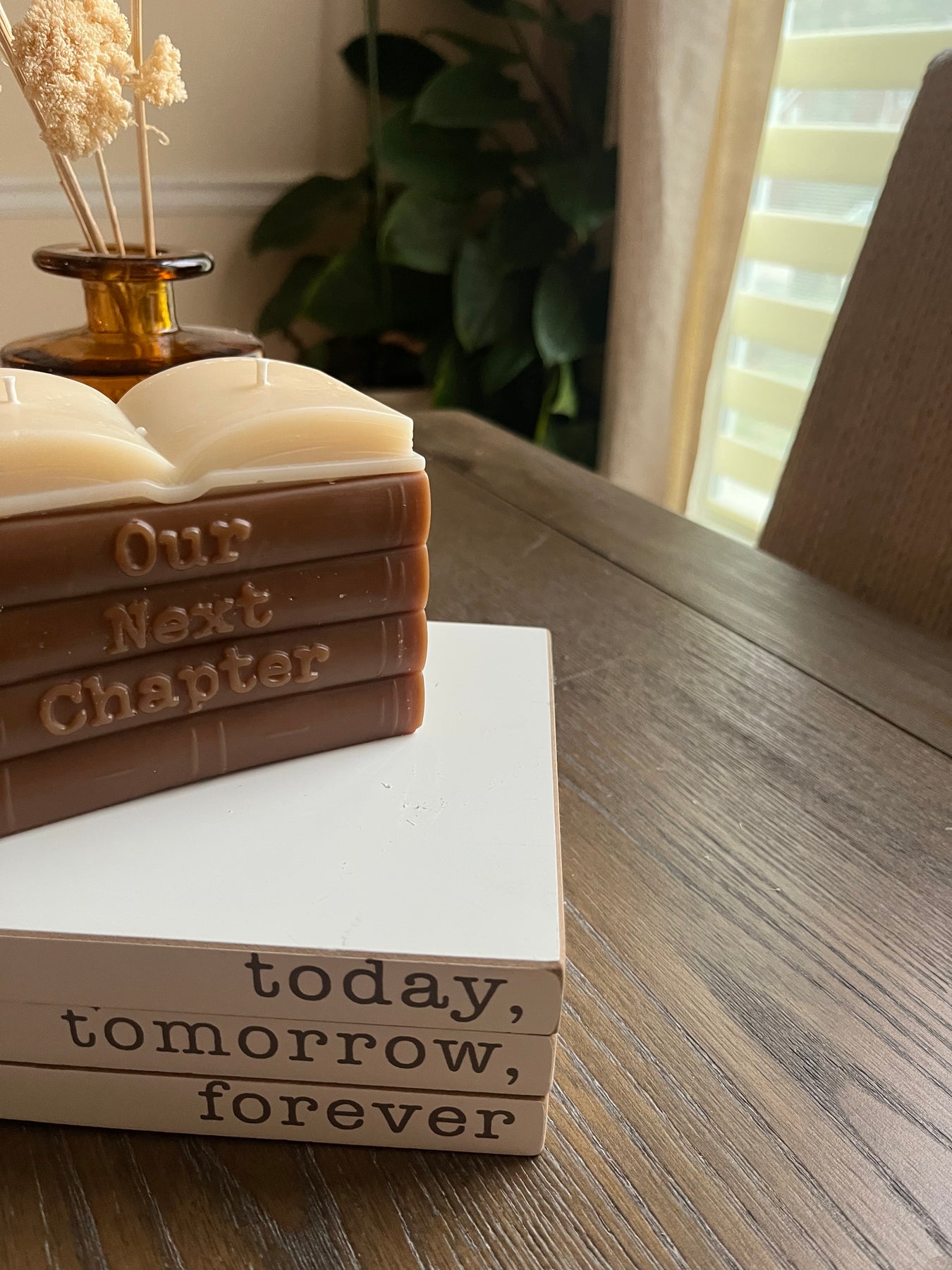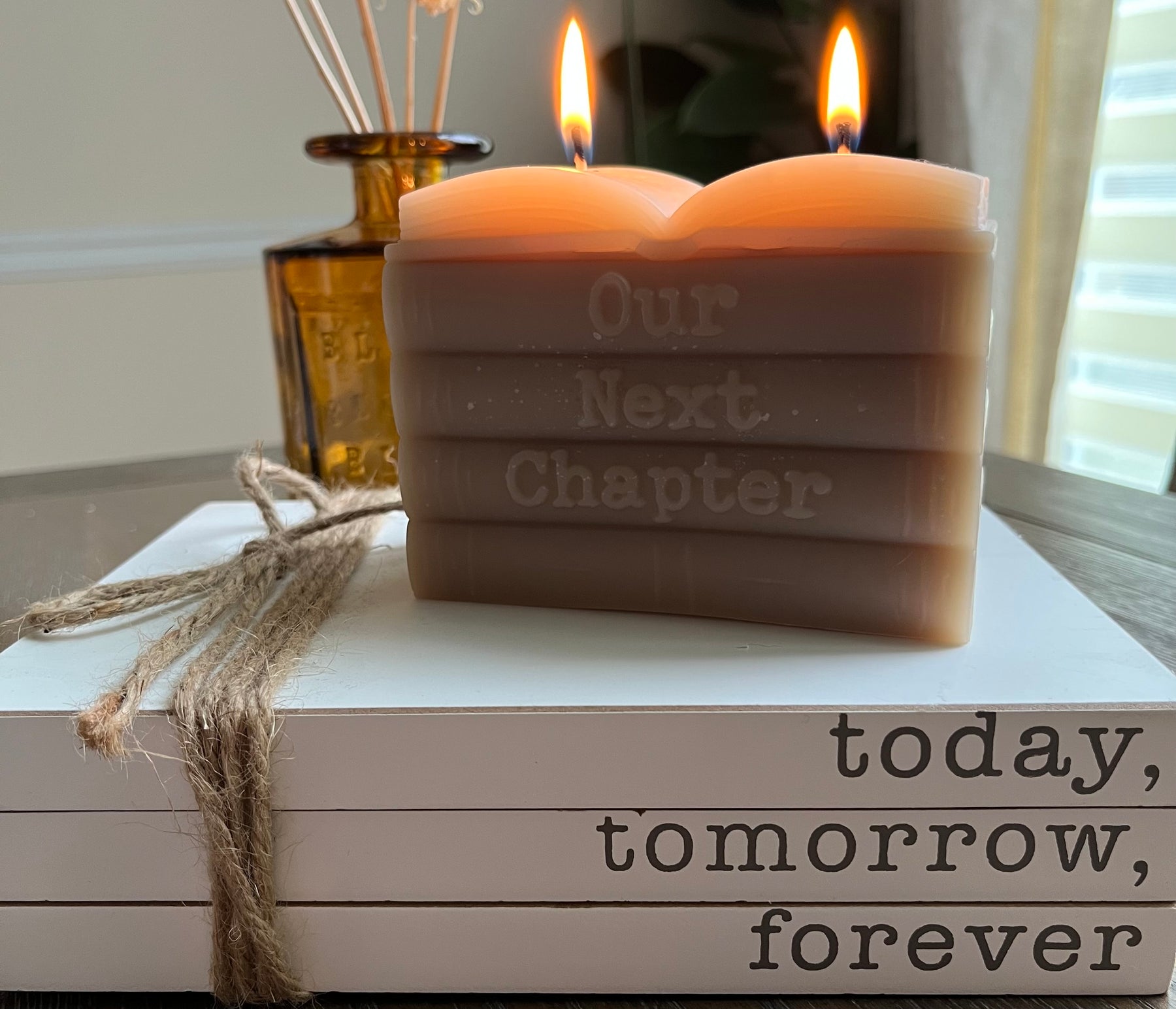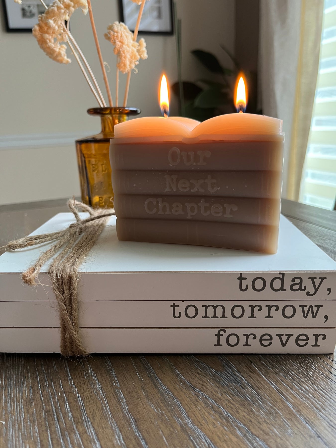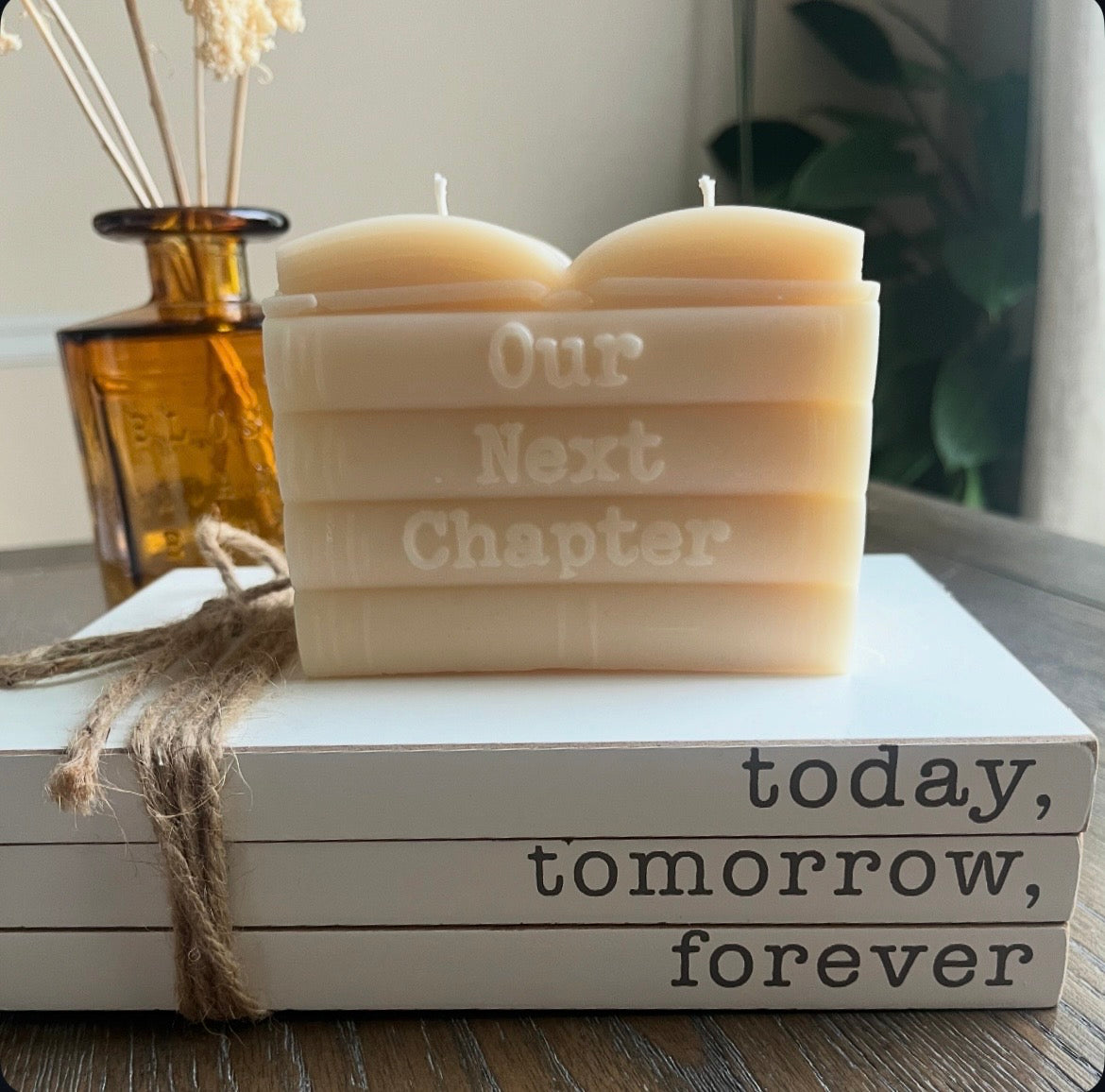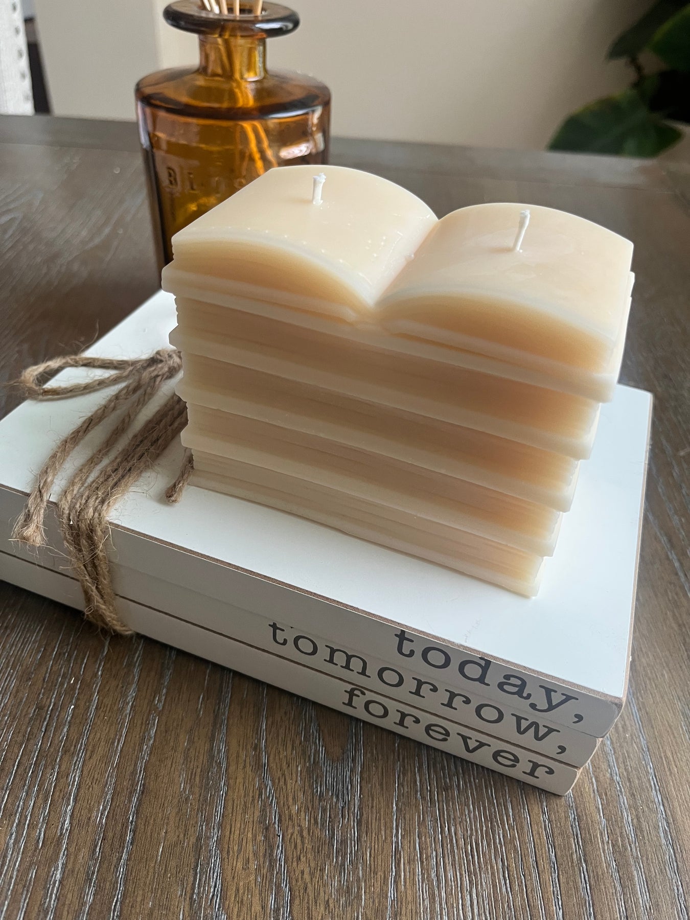 This candle was born from a love of book and the love stories unfolding between the pages. I originally dreamed up this candle as a wedding favor for bookish couples, a sweet little nod to the beginning of their new shared story.